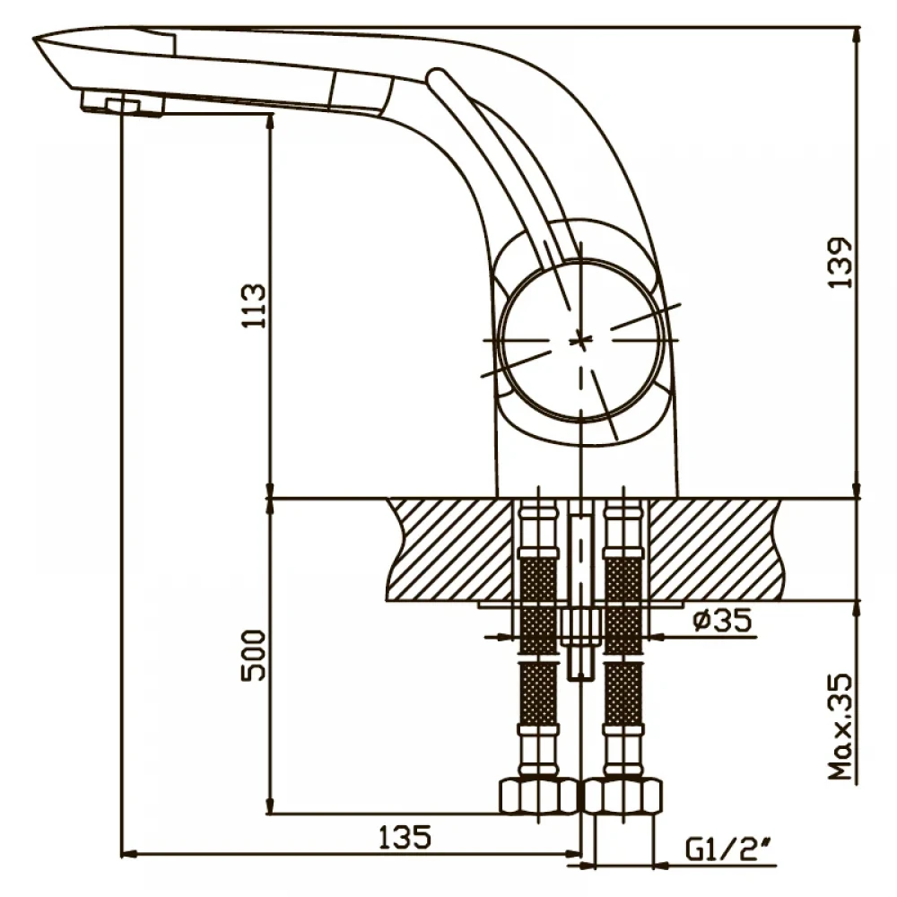 - Вставте гнучкі підводи в отвори умивальника.