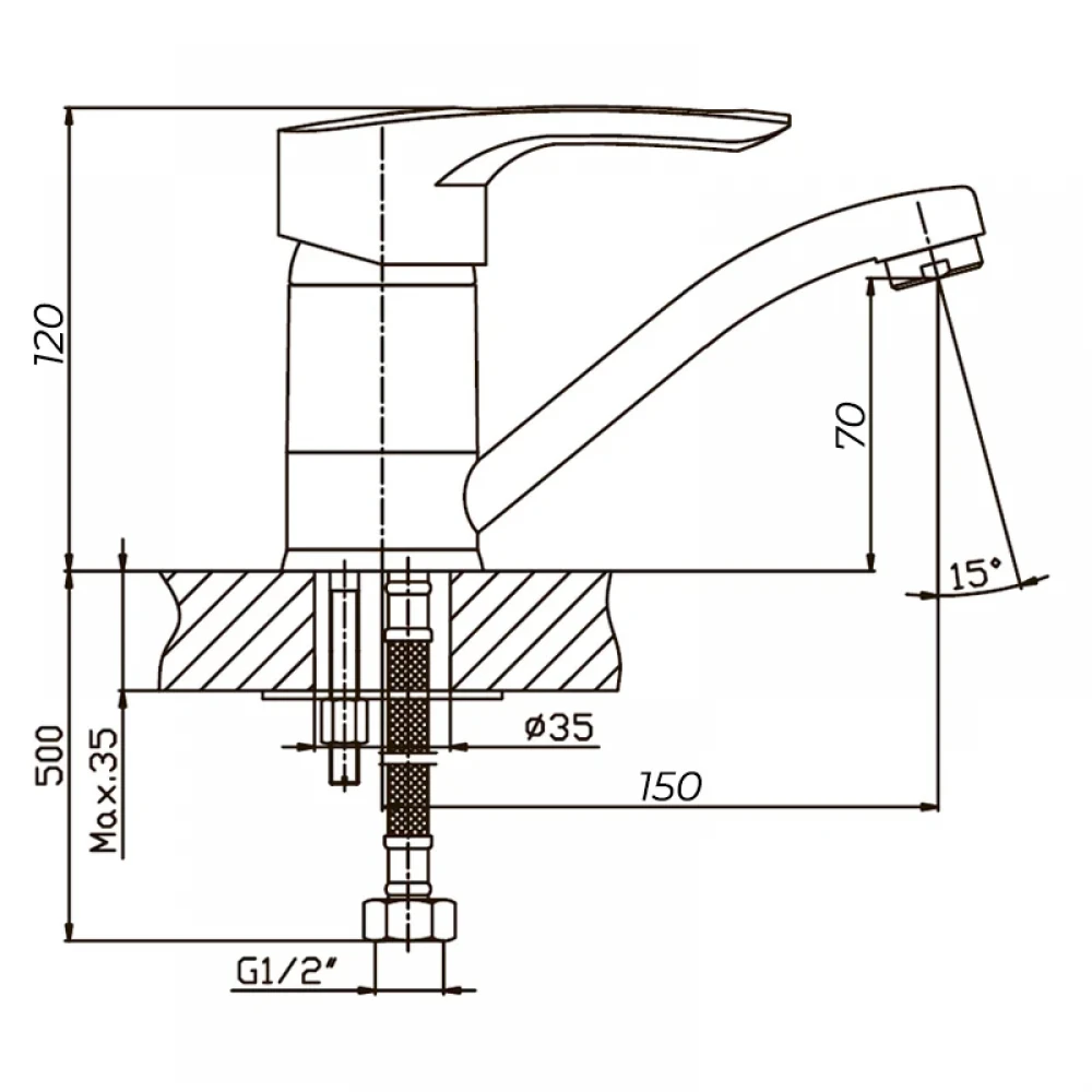 - Поворотний вилив довжиною 15 см для зручного використання.